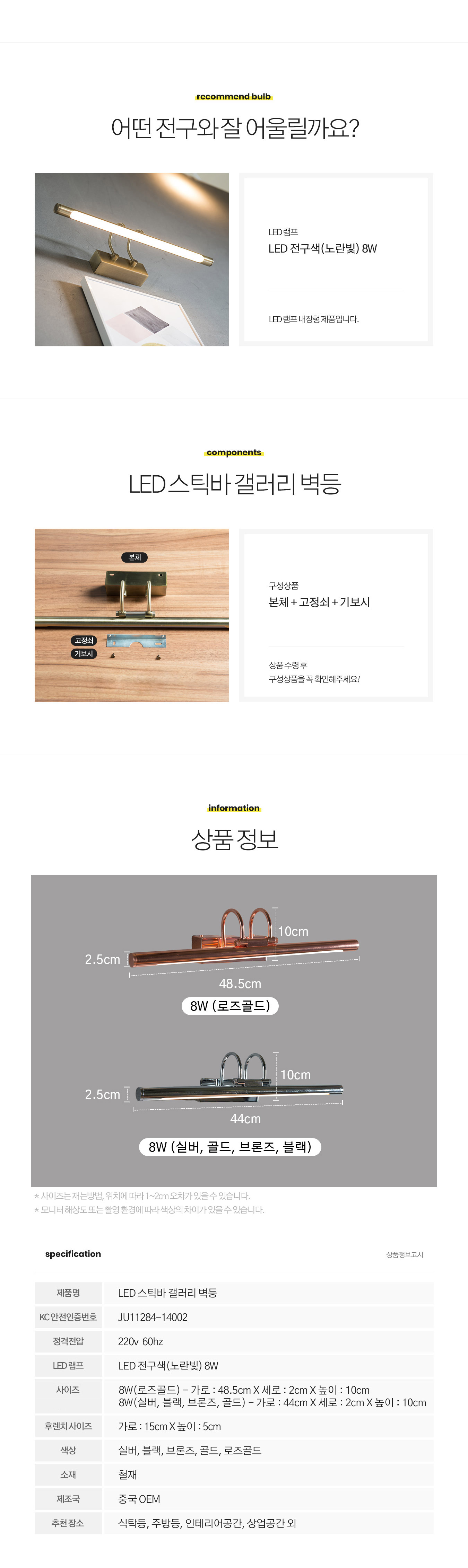 LED 스틱바 갤러리 벽등 8W 5color > 그림/갤러리 벽등 | 문성전기조명